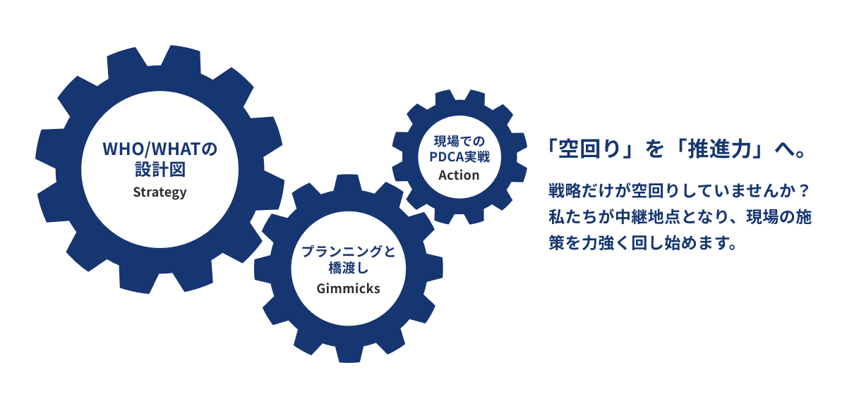 プランニングだけでは終わりません。Gimmicksは、施策の実行まで、一緒に動きます。